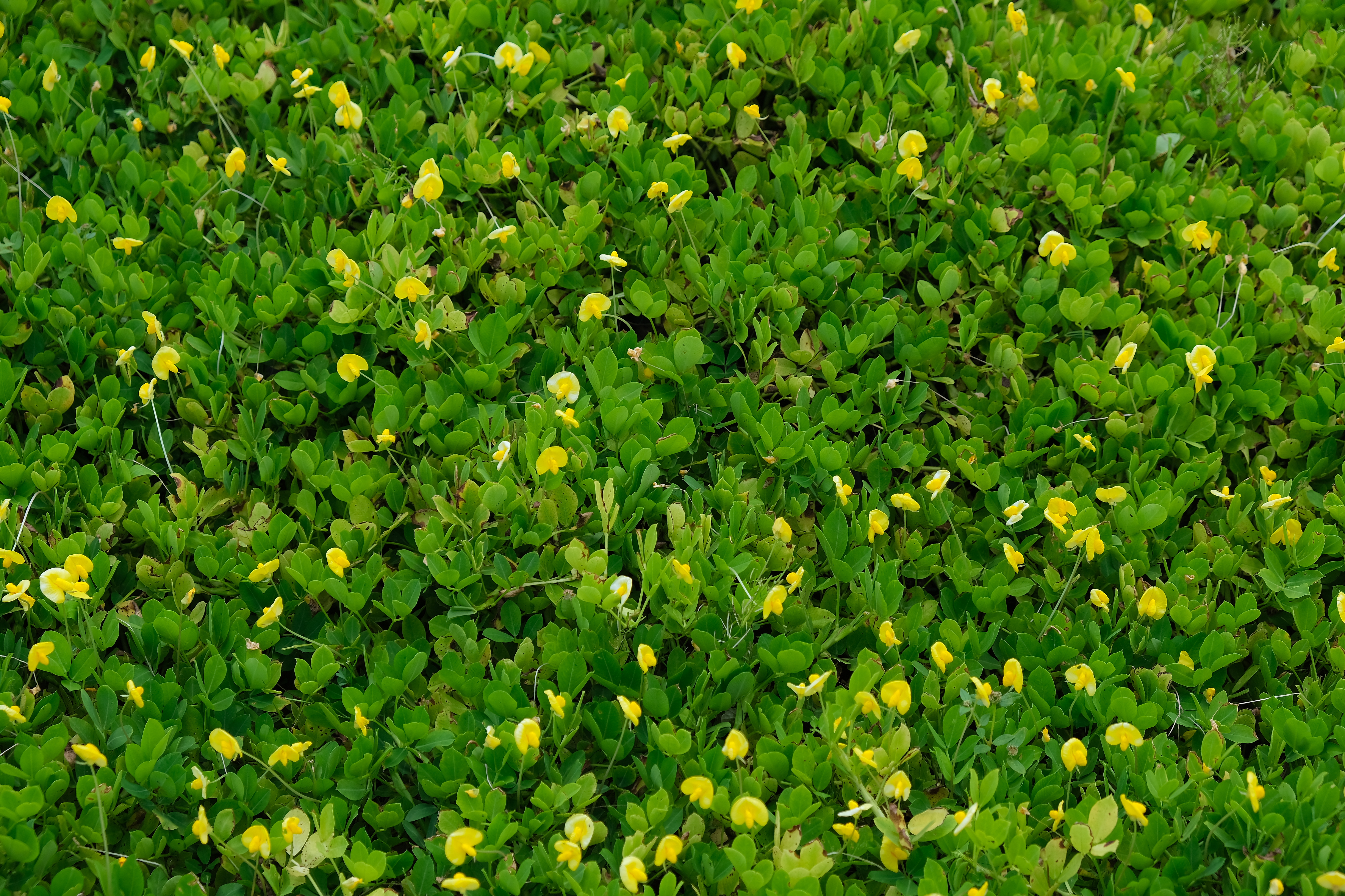 Can you imagine walking on a field of gorgeous yellow flowers? Well, the peanut plant is topped with tiny yellow flowers that appear on and off all year. The dense foliage of mature plants will crowd out most weeds. This plant is easy to care for, strong, and has a long life. It can replace grass in your lawn or be used as a beautiful driveway. This groundcover can surround trees, prevent soil erosion, and be used as landscape filler. This beautiful, blooming groundcover loves the sun and can also be planted in sandy soil. The best part is……. You can walk on it and eat the yellow flowers! The plant needs to be planted in soil 2-3 feet apart. Perennial peanut does well in the lower regions of the South (Zones 8b to 11), extending from southeast Texas and around the coastal areas to southeast North Carolina.